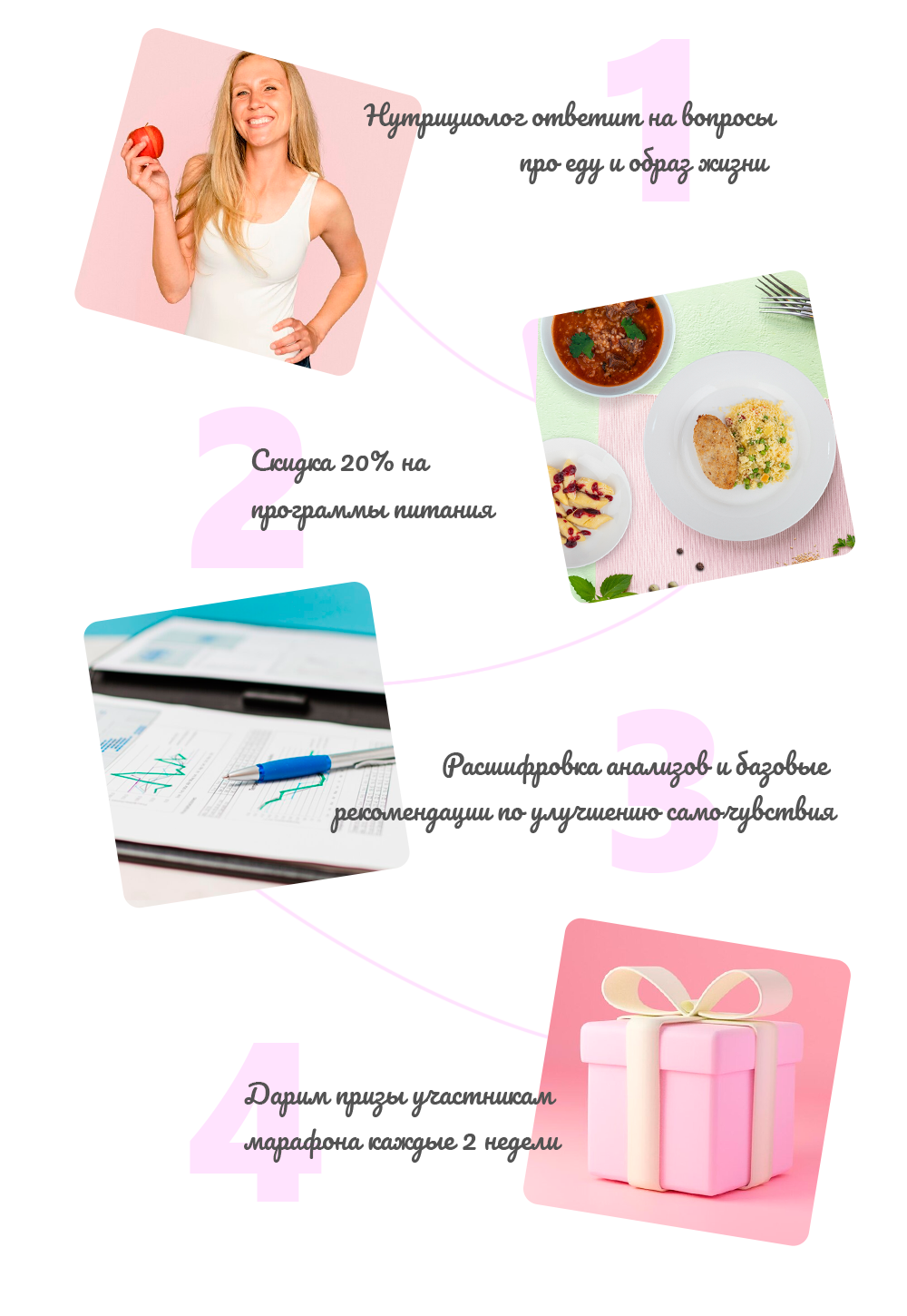 Наш марафон — это не только возможность улучшить свое здоровье, но и шанс выиграть призы, получая поддержку и мотивацию от единомышленников. Присоединяйтесь к нам и начните свое путешествие к лучшей версии себя!