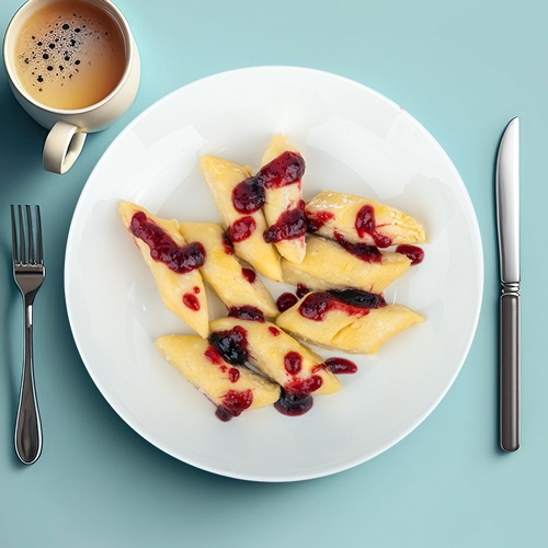 Ленивые вареники с клюквенным джемом