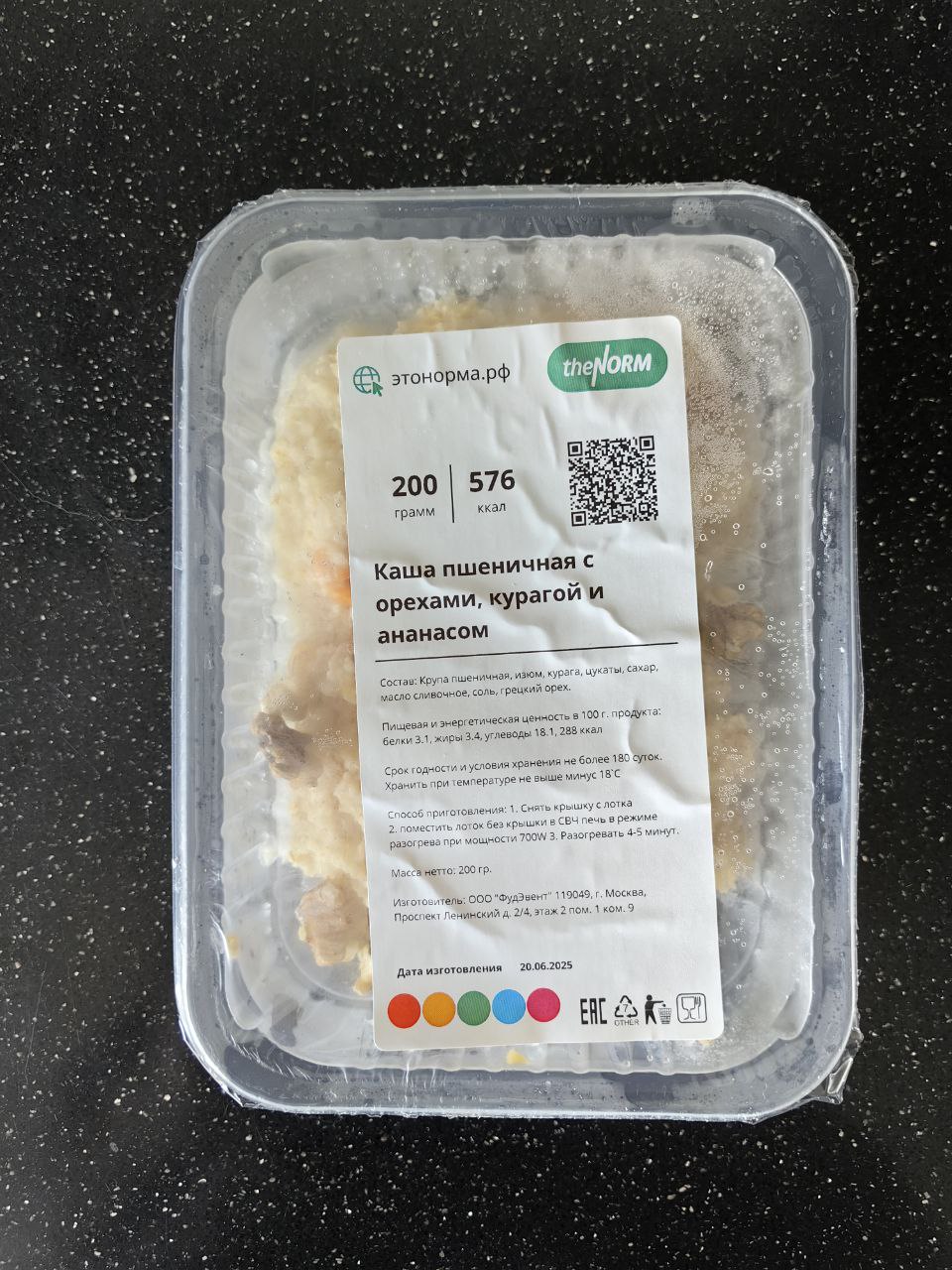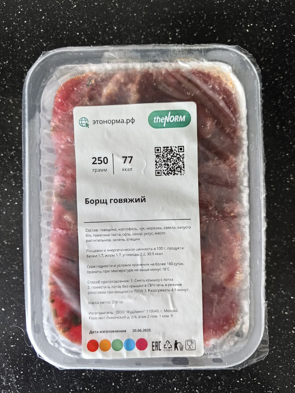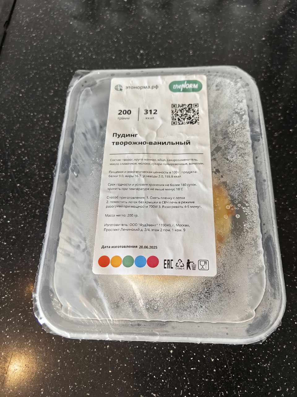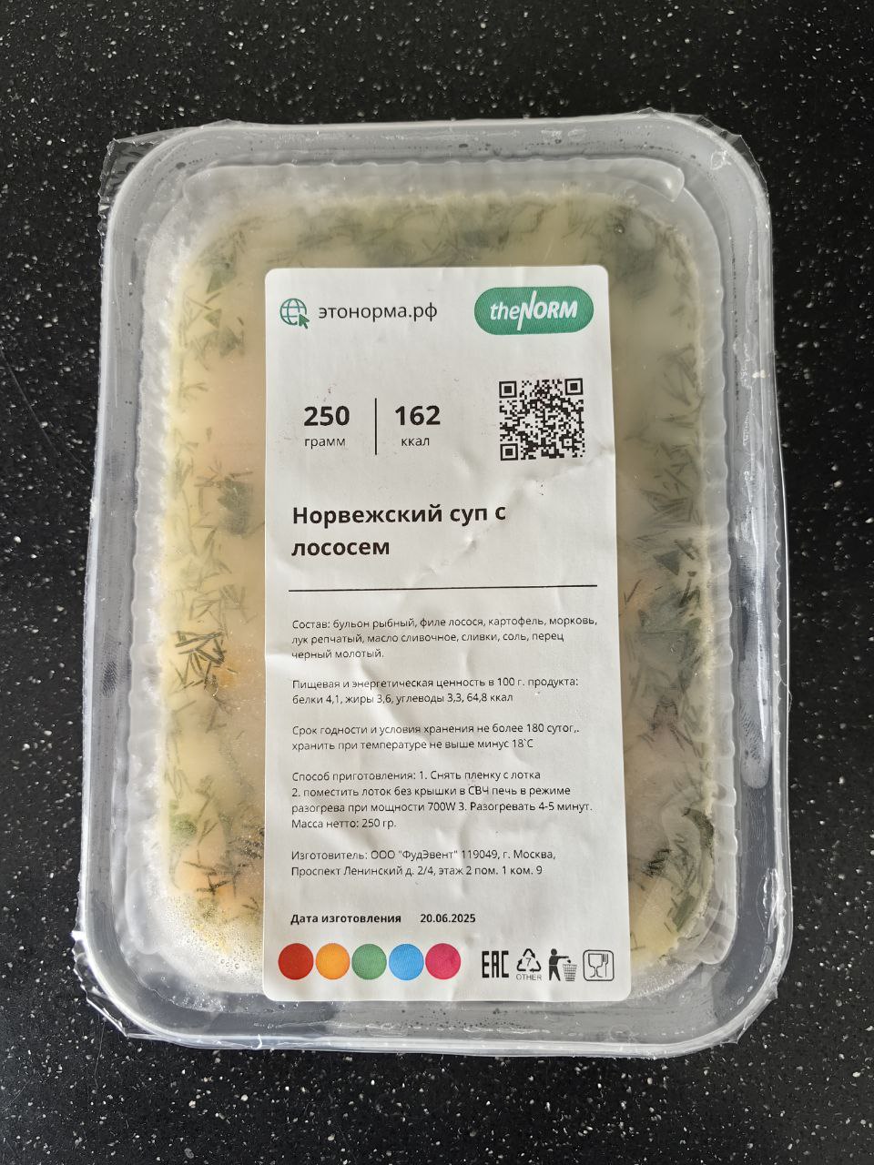 Способ приготовления блюд в наборе: Удалить защитную пленку с верхней части упаковки. Разогревать в микроволновой печи течении 5 минут, мощность 700W.